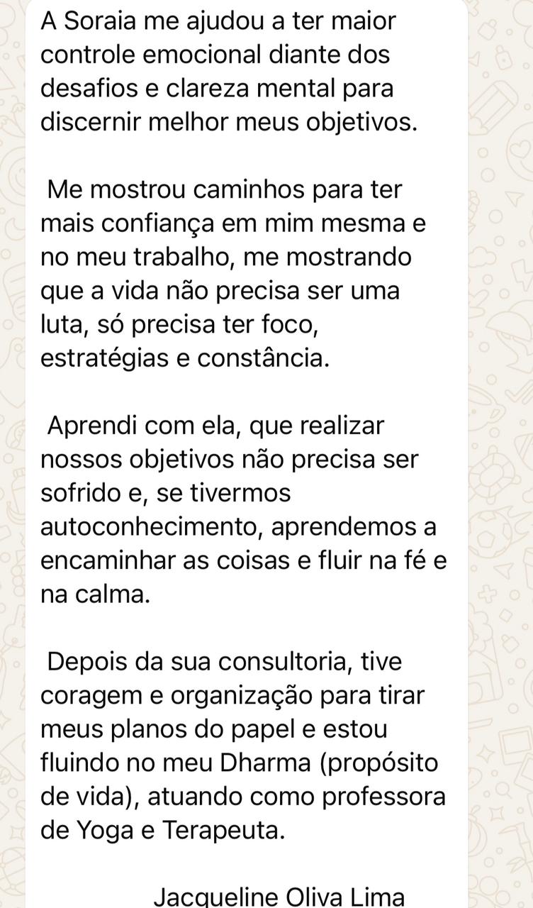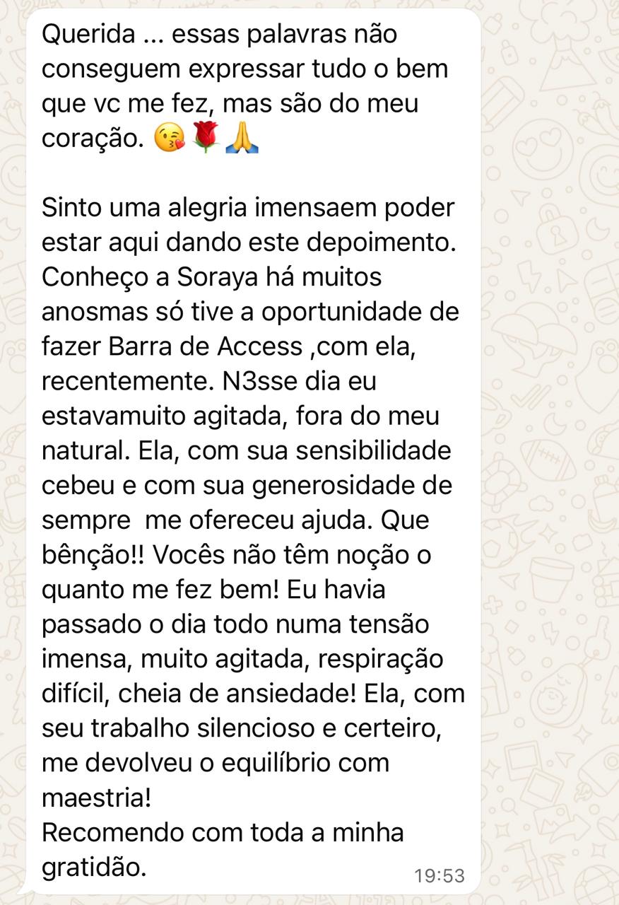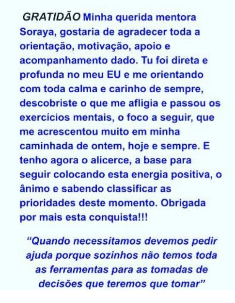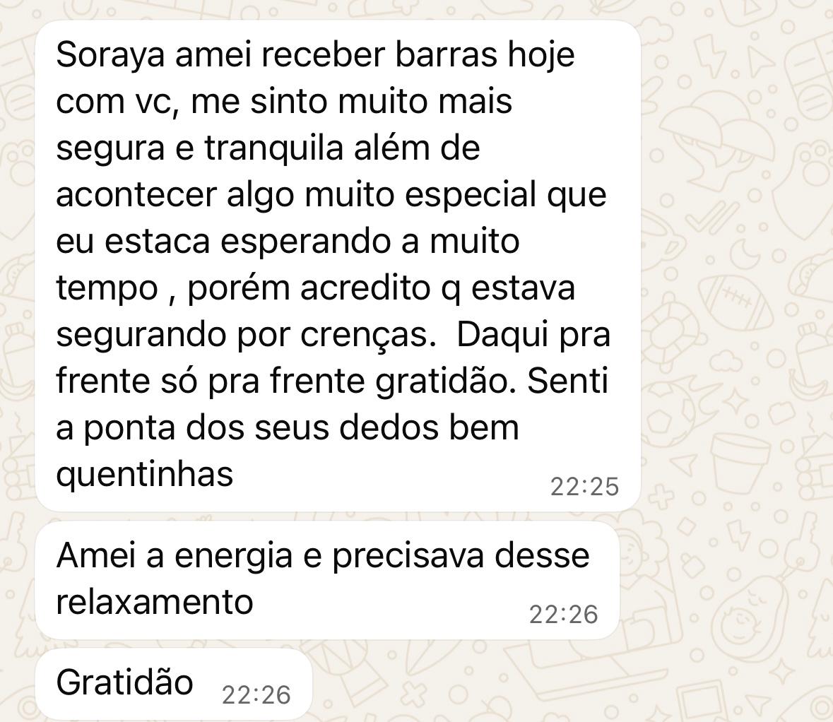 Prints reais de alunas e clientes que viveram a transformação emocional e energética com Soraya.